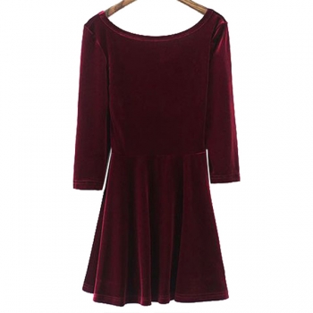 Sexy Backless Long Sleeve Round Neck Solid Color Dress