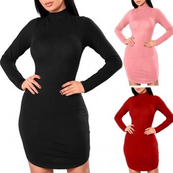Sexy Backless Long Sleeve Solid Color Bodycon Dress