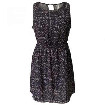 Sexy Backless Sleeveless Round Neck Gathered Waist Printed Dress