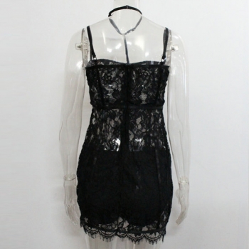 Sexy Backless Slim Fit Solid Color Halter Lace Dress