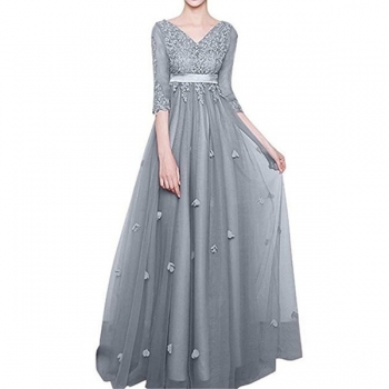 Sexy Backless V-neck Half Sleeve High Waist Lace Spliced Party Dress