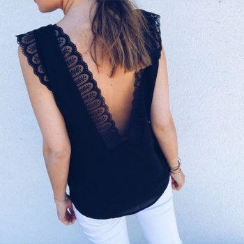 Sexy Backless V-neck Lace Spliced Sleeveless Top