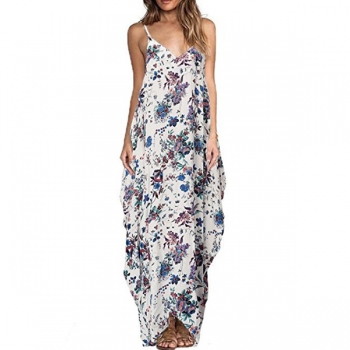 Sexy Backless V-neck Loose Printed Sling Dress