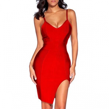 Sexy Backless V-neck Slit Hem Solid Color Slim Fit Sling Dress