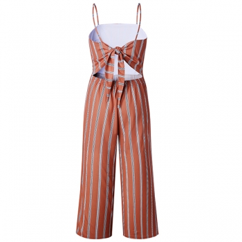 Sexy Boat-neck Off-shoulder Sleeveless Backless Striped Bowknot Jumpsuit