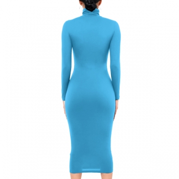 Sexy Contrast Color Long Sleeve Spliced Slim Fit Zipper Dress