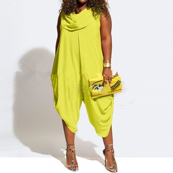 Sexy Cowl Neck Sleeveless Solid Color Jumpsuit