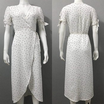 Sexy Deep V-neck Irregular Hem Short Sleeve Dots Printed Dress
