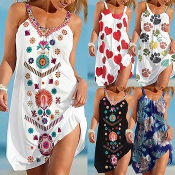 Sexy Deep V-neck Short Sleeve Slim Fit Printed Dress