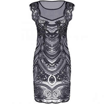 Sexy Gauze Spliced Sleeveless Slim Fit Sequin Party Dress