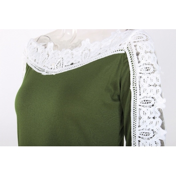 Sexy Lace Spliced Long Sleeve V-neck Knit Top