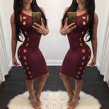 Sexy Lace-up Keyholes Sleeveless Round Neck Sheath Dress