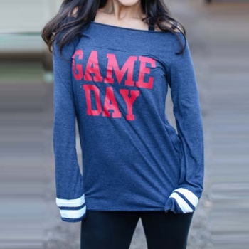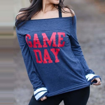 Sexy Letters Printed Off Shoulder Long Sleeve T-shirt