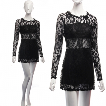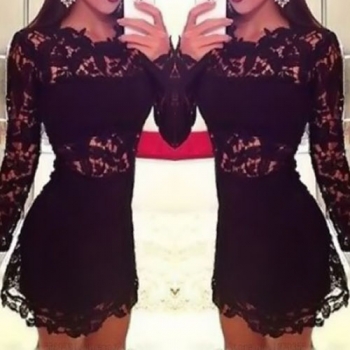 Sexy Long Sleeve Round Neck Slim Fit Hollow Out Lace Dress