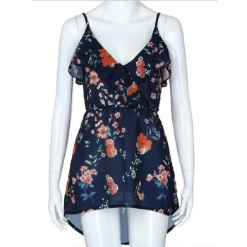 Sexy Lotus Spliced Deep V-neck Sleeveless Ruffle Hemline Dress