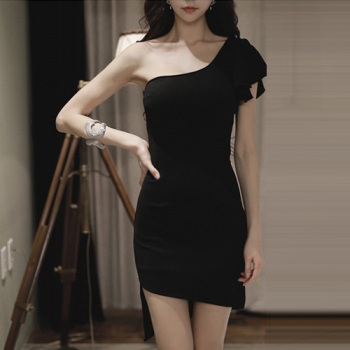 Sexy Oblique Shoulder Irregular Hem Slim Fit Party Dress
