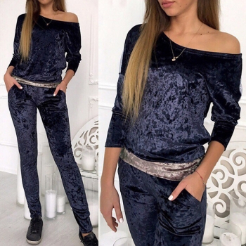 Sexy Oblique Shoulder Long Sleeve Sweatshirt + Pants Sports Suit