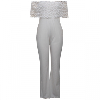 Sexy Off-shoulder Boat Neck High Waist Lace Spliced Jumpsuit