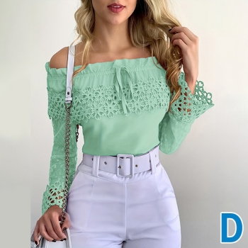 Sexy Off-shoulder Boat Neck Lace Spliced Top