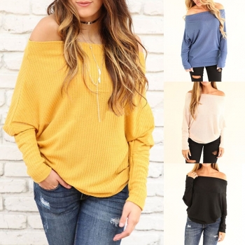 Sexy Off-shoulder Boat Neck Long Sleeve Solid Color Loose Top