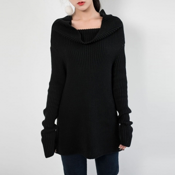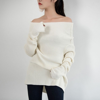 Sexy Off-shoulder Boat Neck Long Sleeve Solid Color Sweater