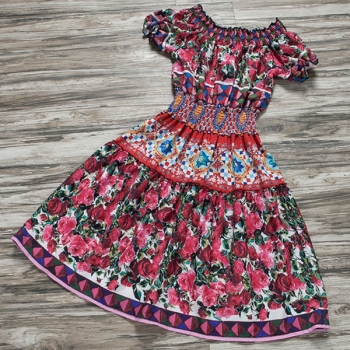 Sexy Off-shoulder Boat Neck Short Sleeve Elastic Waist Printed Dress