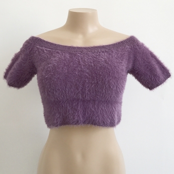 Sexy Off-shoulder Boat Neck Short Sleeve Solid Color Knit Crop Top