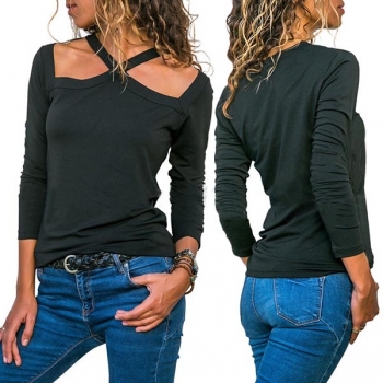 Sexy Off-shoulder Long Sleeve Crossover Halter T-shirt
