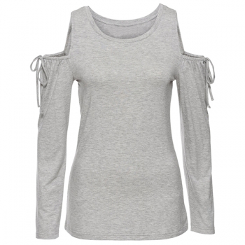 Sexy Off-shoulder Long Sleeve Round Neck Solid Color T-shirt