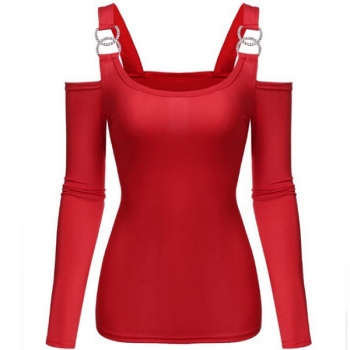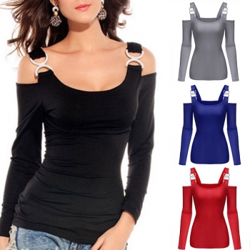 Sexy Off-shoulder Long Sleeve Solid Color T-shirt