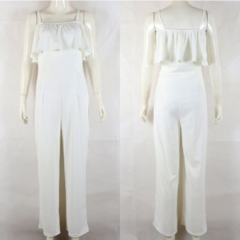 Sexy Off-shoulder Ruffle High Waist Solid Color Sling Jumpsuit
