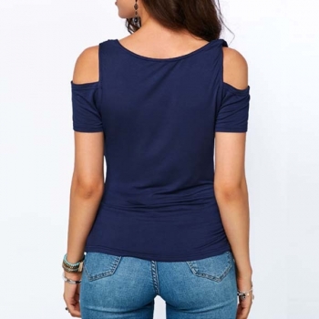 Sexy Off-shoulder Short Sleeve Cowl Neck Solid Color T-shirt
