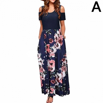 Sexy Off-shoulder Short Sleeve Printed Spliced Maxi Dress