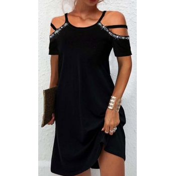 Sexy Off-shoulder Short Sleeve Solid Color Sling Dress