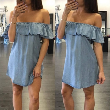 Sexy Off-shoulder Slash Neck Flouncing Dress