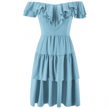 Sexy Off-shoulder Solid Color Ruffle Dress