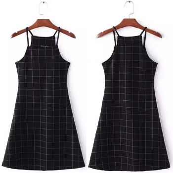 Sexy Sleeveless Sling Plaid A-line Dress