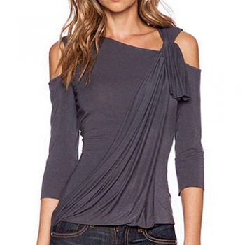 Sexy Solid Color Cold Shoulder 3/4 Sleeve Irregular Hemline T-shirt