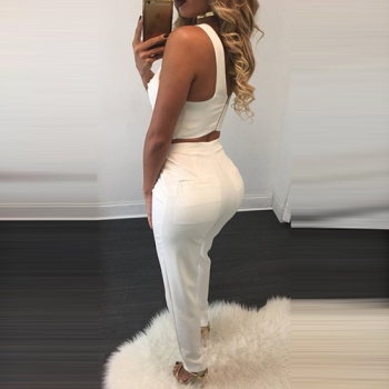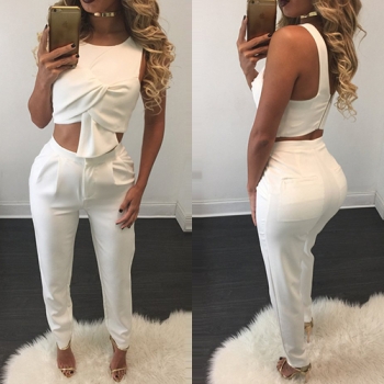 Sexy Solid Color Knotted Crop Tops and Pants Two Piece Set
