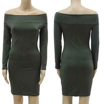 Sexy Solid Color Off Shoulder Long Sleeve Bodycon Dress