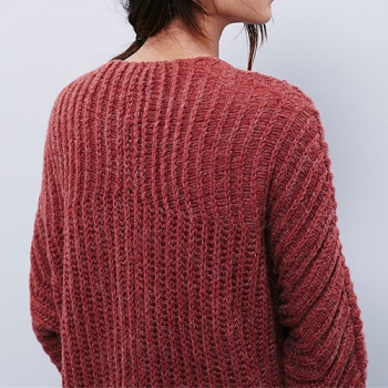 Sexy Solid Color Patch Pockets Long Sleeve V-neck Loose-fitting Sweater