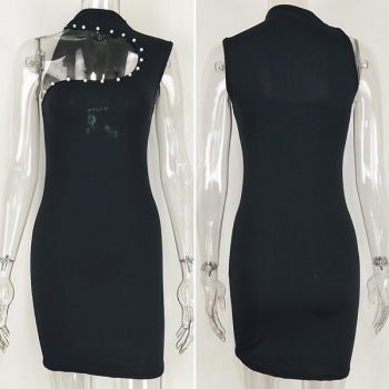 Sexy Solid Color Pearls Sleeveless Slim Fit Over-hip Dress