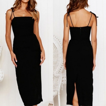 Sexy Solid Color Slit Hem Slim Fit Cami Dress