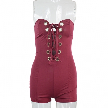 Sexy Strapless High Waist Solid Color Lace-up Romper