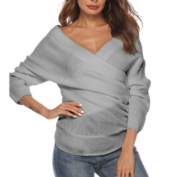 Sexy V-neck Long Sleeve Solid Color Sweater