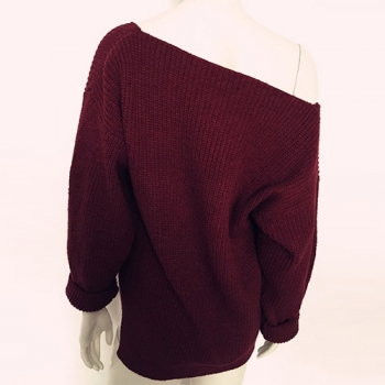 Stylish Solid Color V-neck Bat Sleeve Loose-fitting Knit Sweater