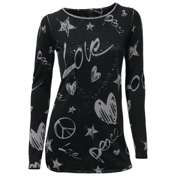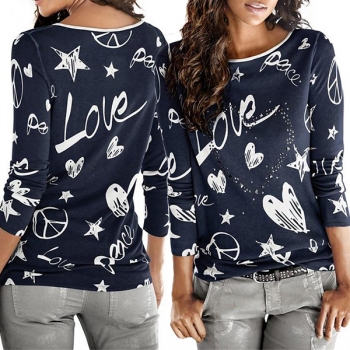 Sweet Style Long Sleeve Round Neck Printed Knit Top