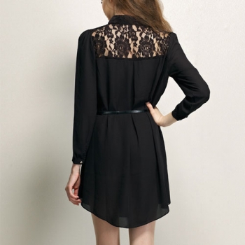Asym Hem Lace Long Sleeve Button Down Shirt