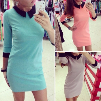 Fashion Contrast Color 3/4 Sleeve Peter Pan Collar Slim Fit Dress