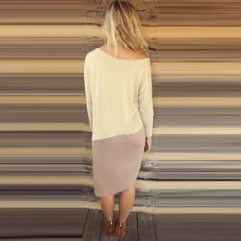 Fashion Contrast Color Long Sleeve Round Neck Irregular Hem Dress